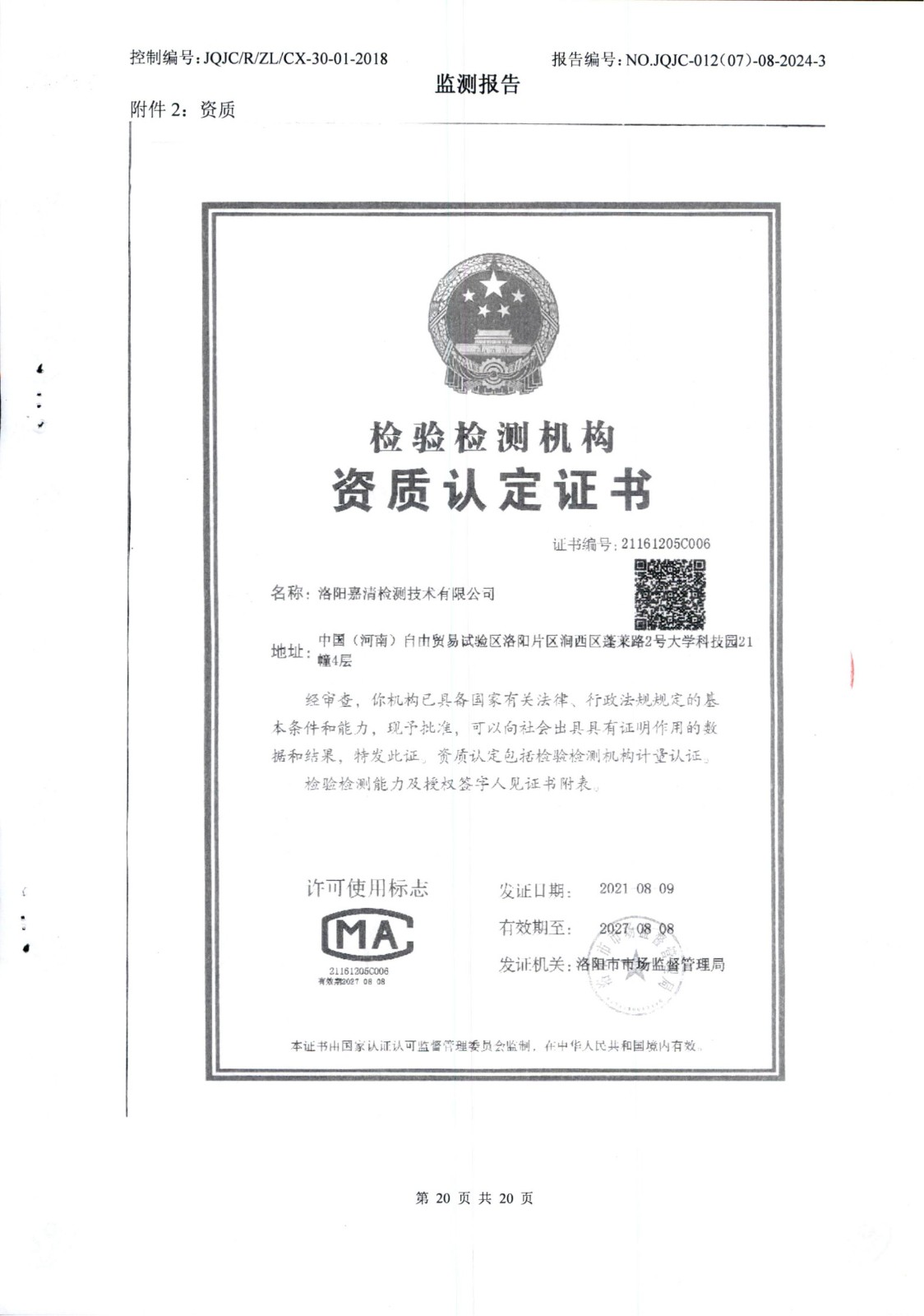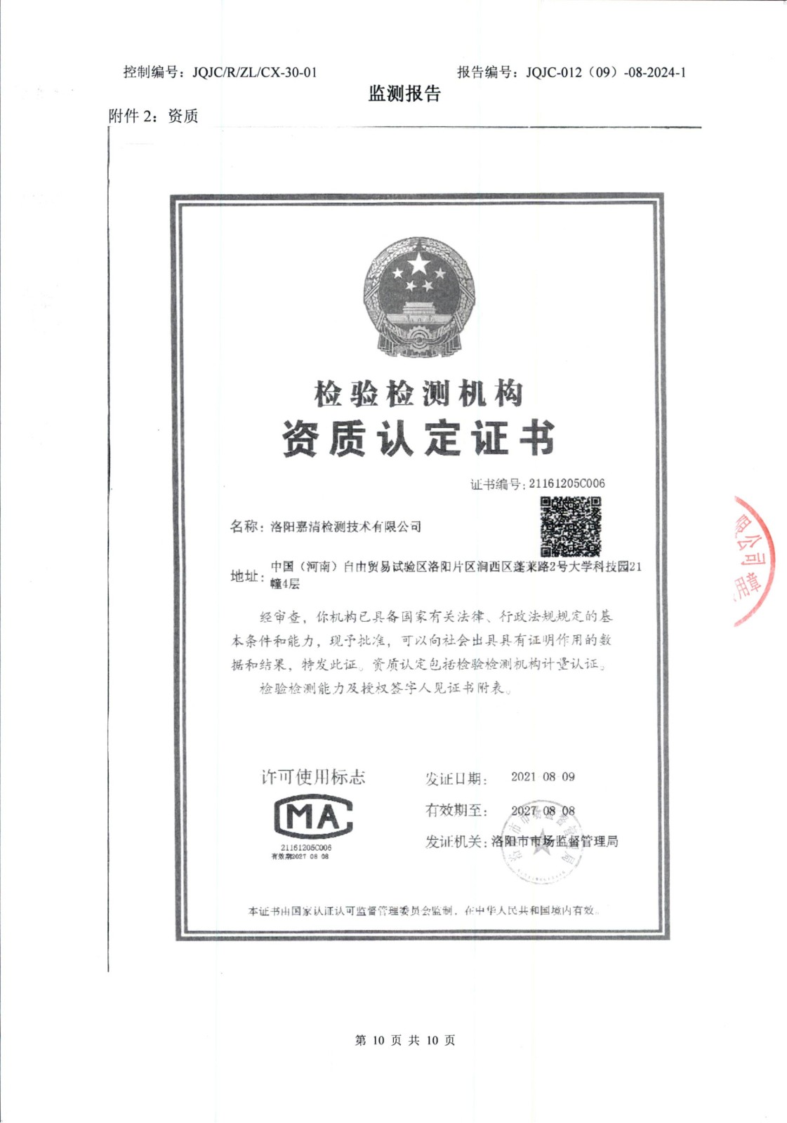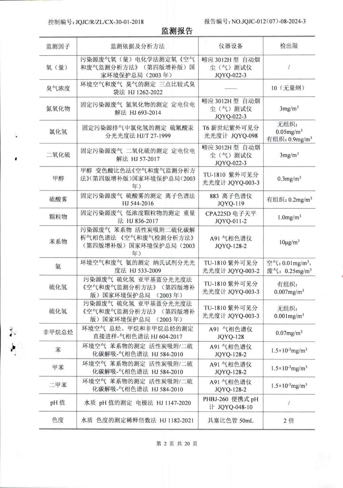 廢氣在線比對(duì)檢測(cè)報(bào)告